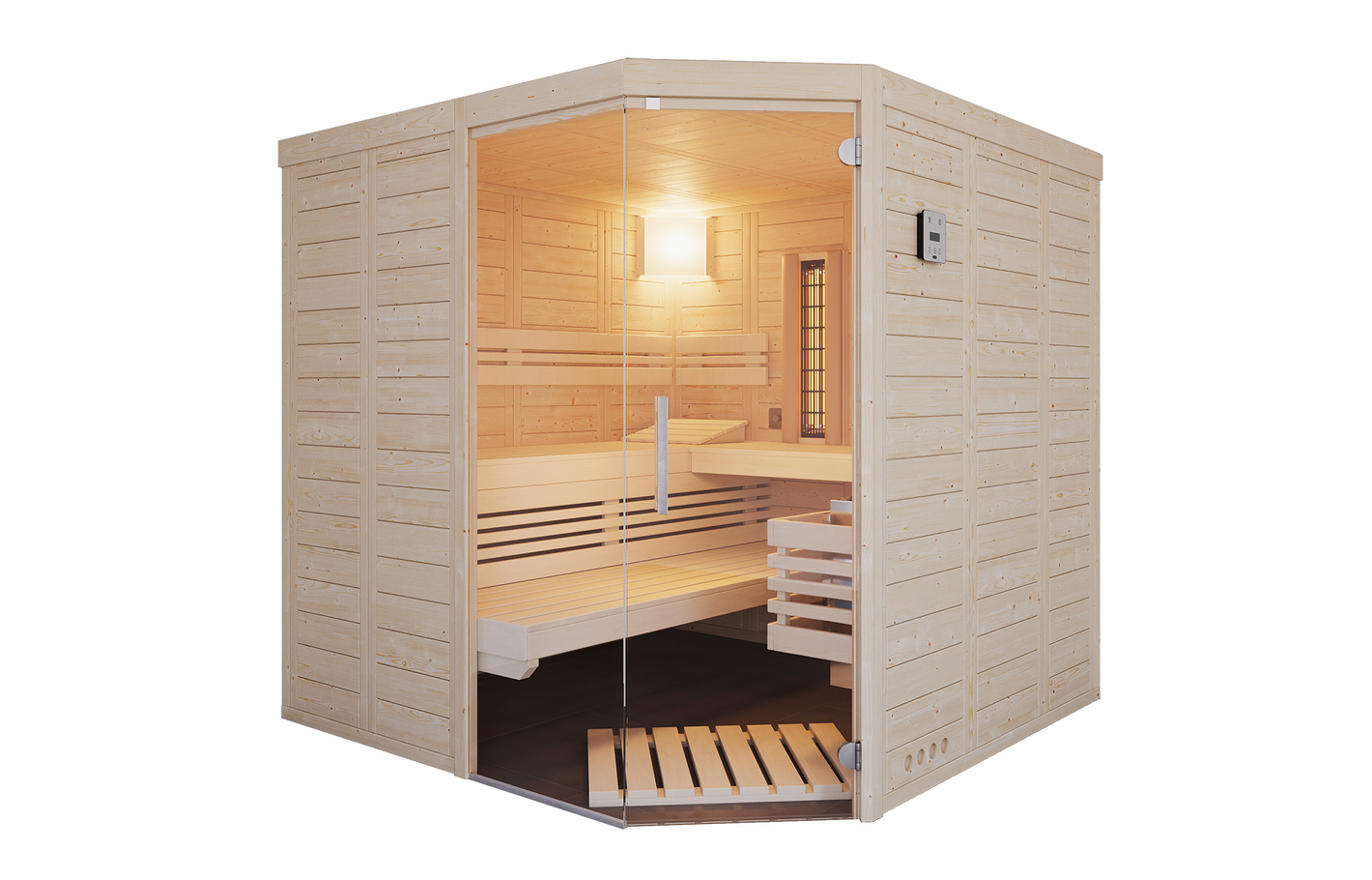 The "Solido Complete” sauna-infrared combination in solid Nordic spruce is equipped with one VITALlight ABC heater as standard. You can use the adjustable controls to gradually change the radiation intensity as you see fit.
