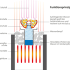 Durch das Erwärmen des Saunaofens verdampft das Wasser. Der dabei entstehende Wasserdampf steigt durch Öffnungen in den, mit Salzsteinen gefüllten, Verdampfertopf. So reichert sich dieser beim Ausspülen der Salzsteine mit Salz an und verteilt sich gleichmäßig in der Sauna.