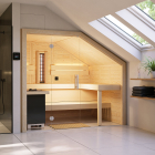 Modern, geradlinig und aus massiven Blockbohlen: Bei der Saunakabine Classico sind die Vorteile einer Vollholz- mit jenen einer Elementsauna vereint. Erleben Sie so das authentische Klima einer modern interpretierten finnischen Blockbohlensauna.