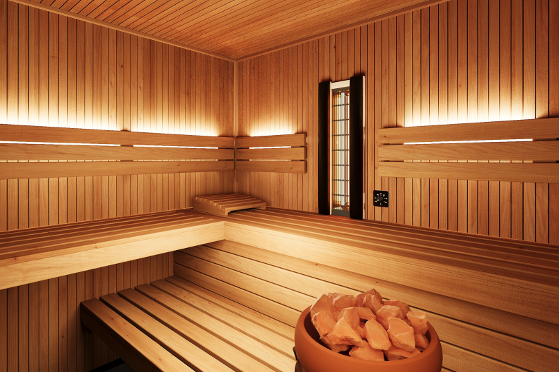 - comfortable benches with a width of 58 cm (in small saunas 48 cm)